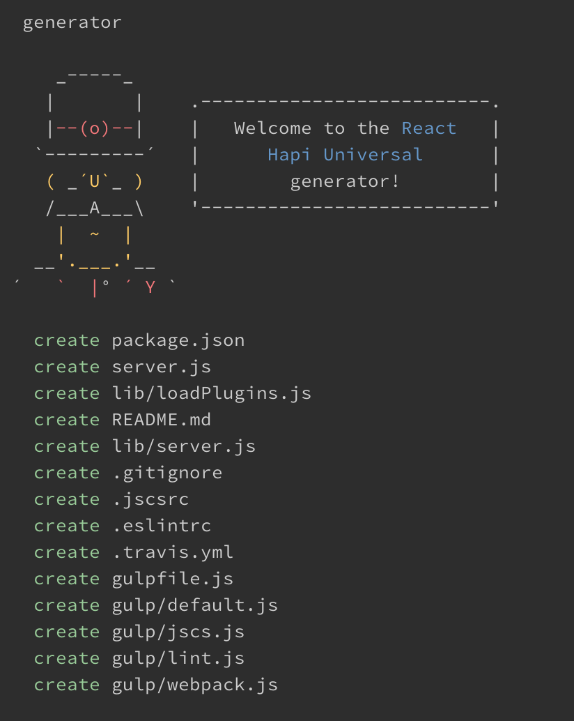 $ npm install -g generator-react-hapi-universalUsage