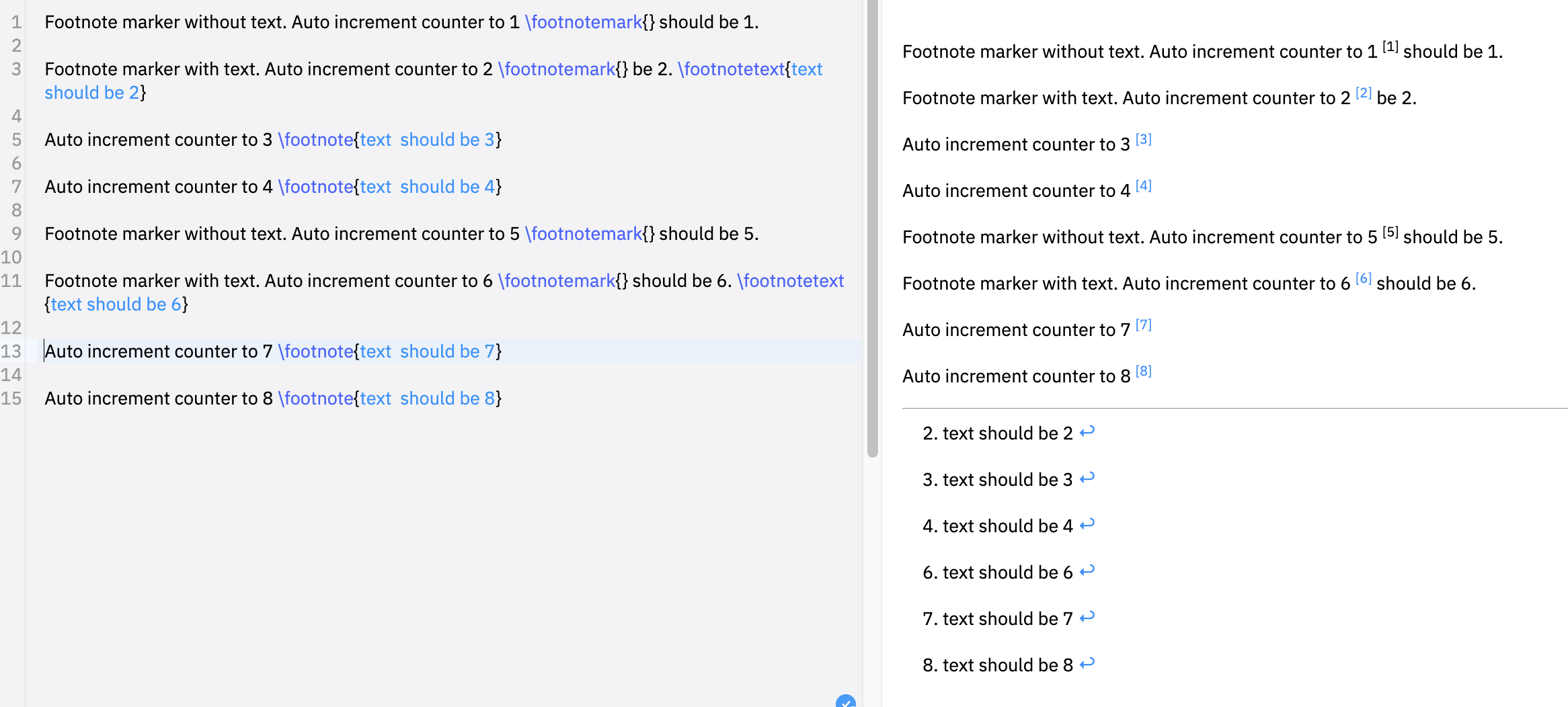 Auto increment counter to 8 \footnote{text should be 8}