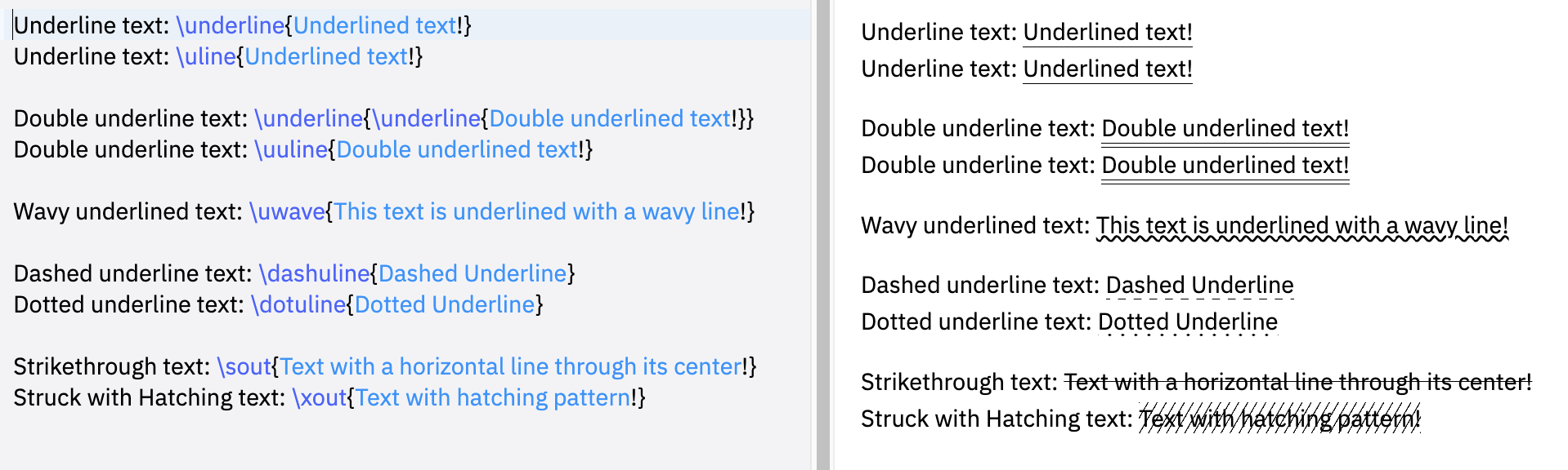 Double underline text: \uuline{Double underlined text!}