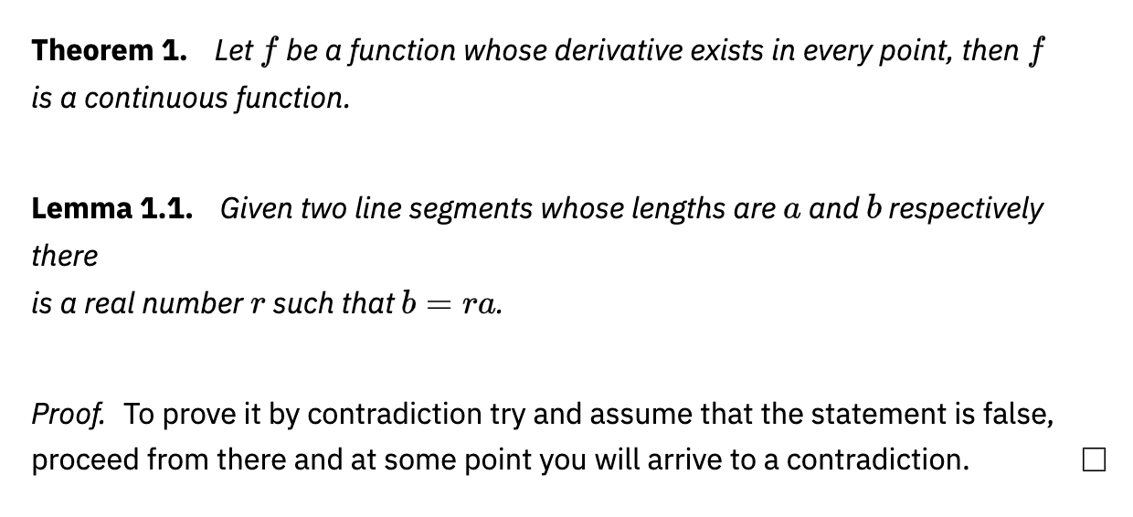 \begin{itemize} ... \end{itemize}and ordered lists via\begin{enumerate} ... \end{enumerate} - numbered and unnumbered equation enviornments