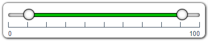 | rangeMargin | Number | step | Slider minValue and maxValue minimum difference. user cannot select less than rangeMargin value. If not specified then step value is min range. If rangeMargin is set to zero then user can select same minValue and maxValue |