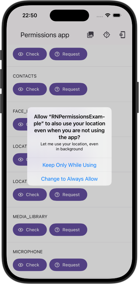 On iOS, background location permission can be requested in two different ways (Apple Developer Docs 📘).