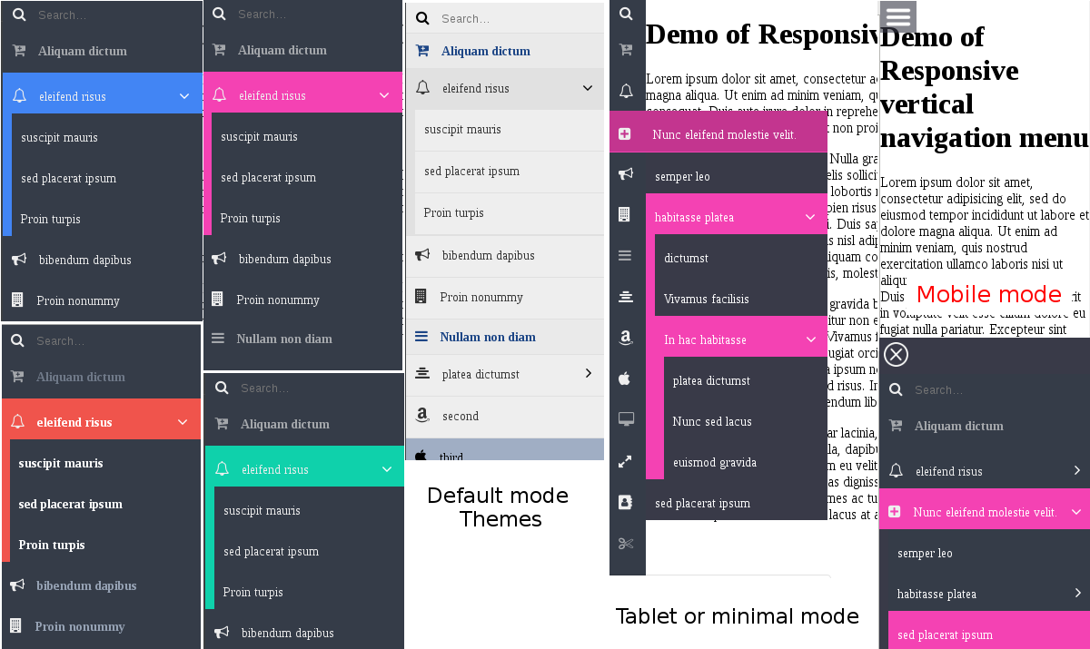 Responsive vertical navigation menu same as wordpress menu, with search and themes.